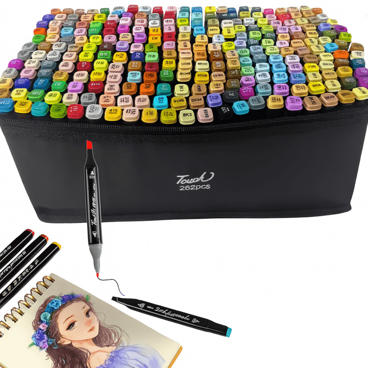 Seja você arquiteto, designer, ilustrador ou iniciante no mundo artístico, este super kit com 262 marcadores é o que faltava para liberar toda a sua criatividade! Com ponta dupla – uma chanfrada larga e outra fina – você tem versatilidade total em traços, sombreamento, contorno e preenchimento.