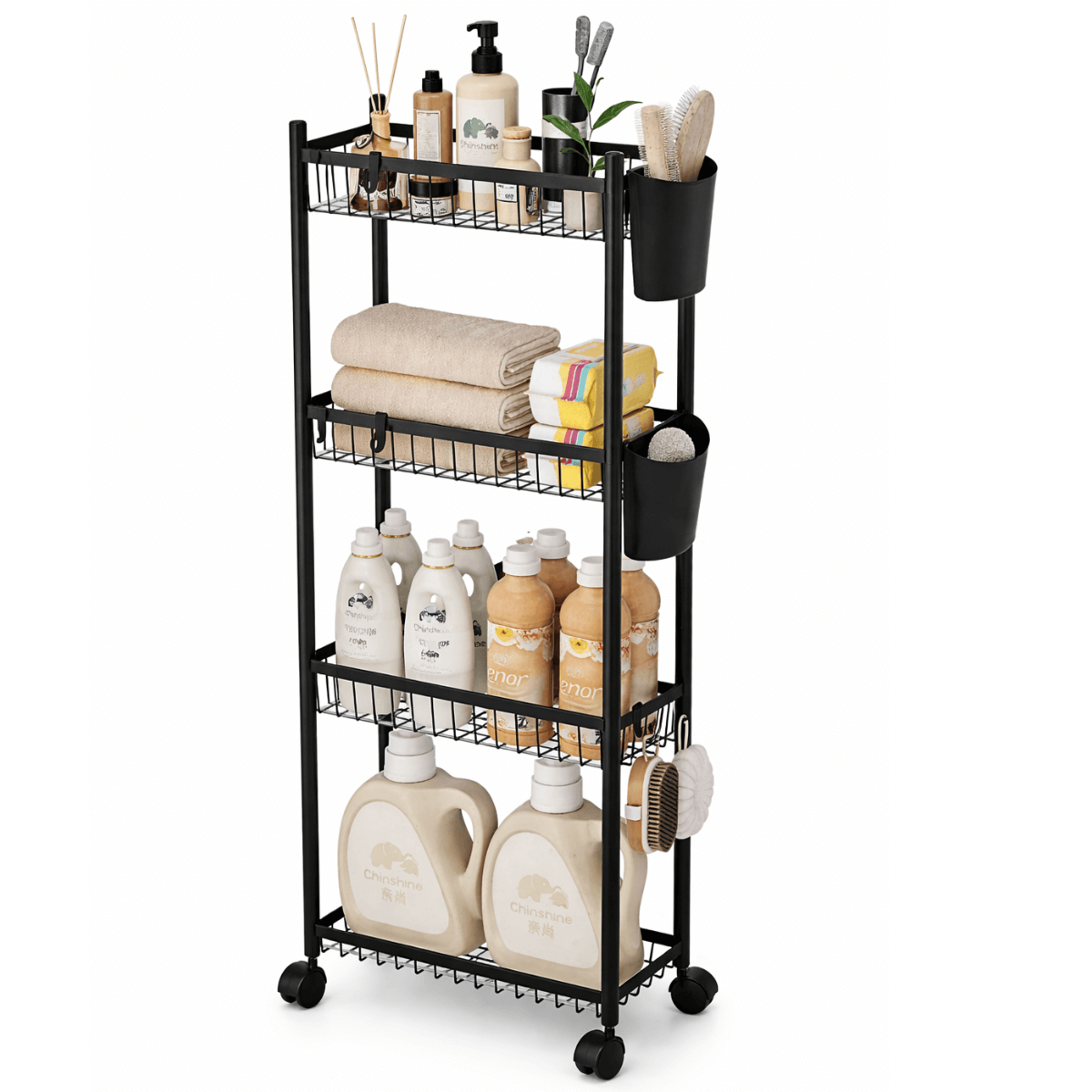 Carrinho Organizador 4 Prateleiras Multiuso Cozinha Lavanderia Banheiro com Ganchos
