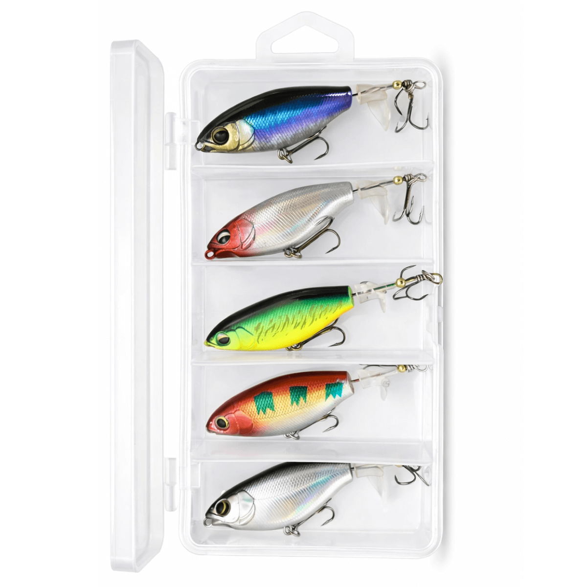 Kit 5 Iscas Artificiais Tucunaré Traíra Lambari + Estojo