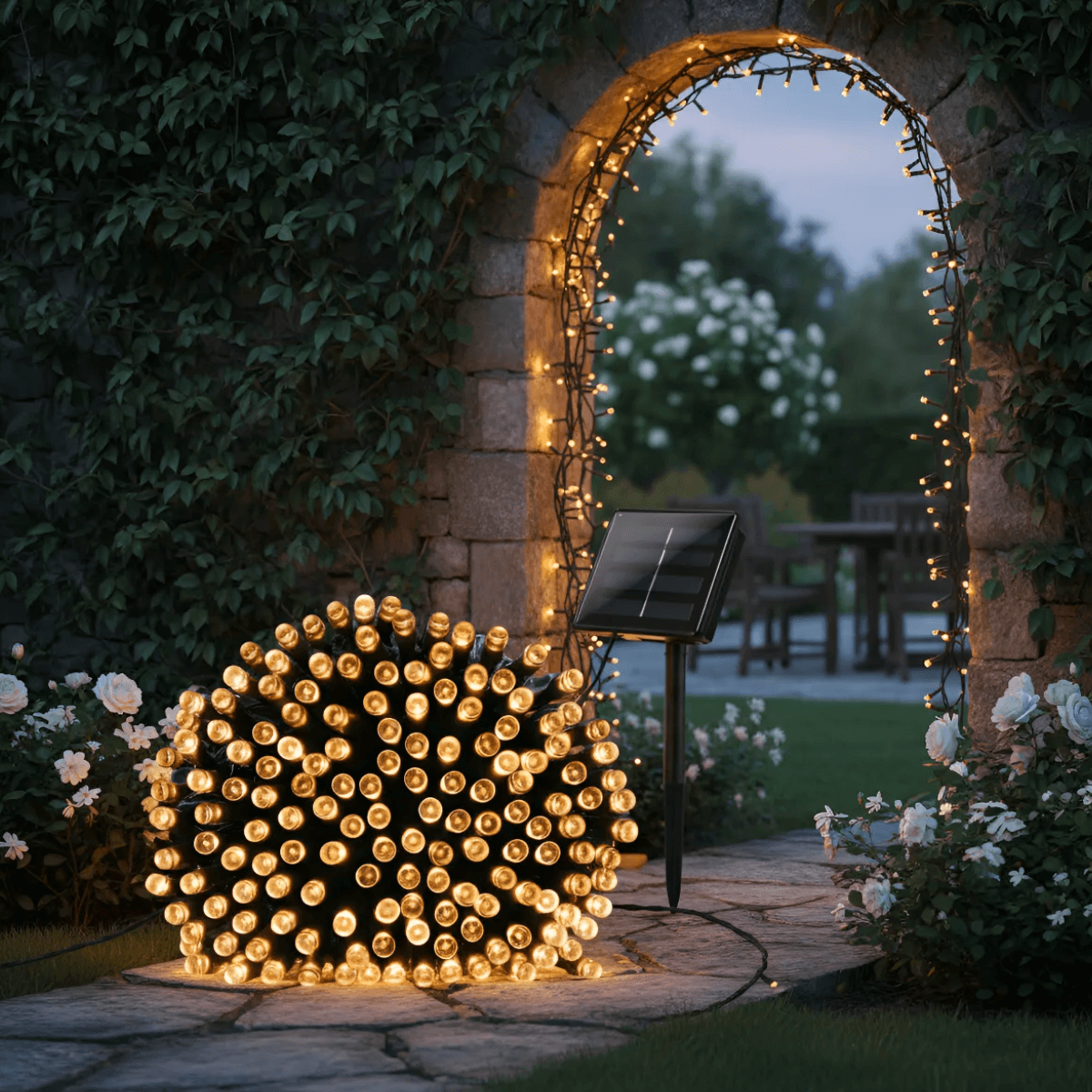 Transforme qualquer espaço em um ambiente mágico e acolhedor com o Pisca-Pisca Solar 200 LEDs Branco Quente! Com tecnologia solar de alta performance, este fio de fada oferece iluminação elegante, econômica e totalmente automática, perfeito para jardins, varandas, festas, vitrines, decoração de Natal e muito mais.