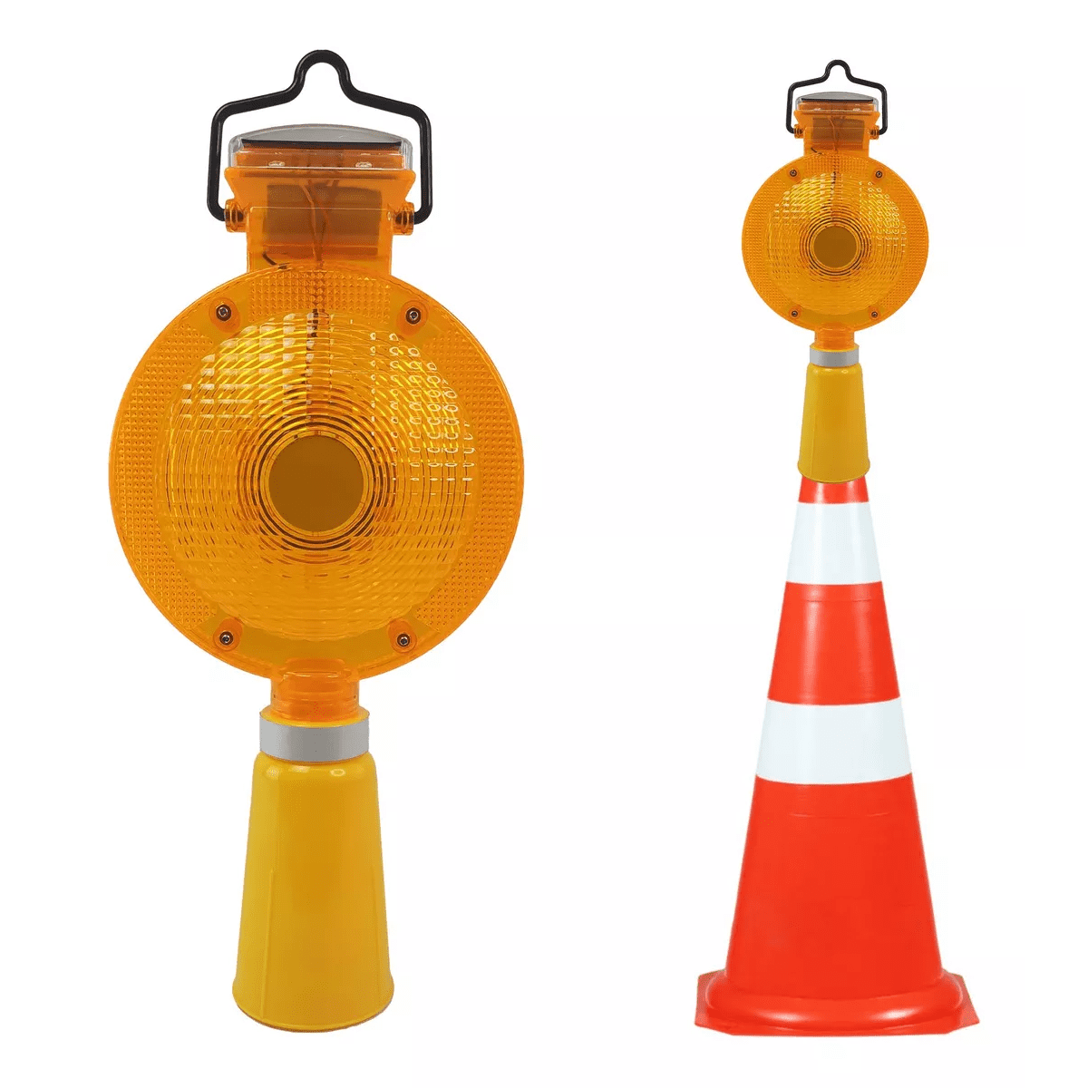 Fabricado com 02 lentes circulares de 180+180 graus translúcida em policarbonato na cor âmbar e corpo em polietileno de alto impacto, facilmente visível dia e noite. O sinalizador eletrônico possui sistema de fotocélula para ligar automaticamente no escuro (Com o Sinalizador ativado), e painel solar para carregamento das baterias. O Sinalizador pode ser usado em dias chuvosos.